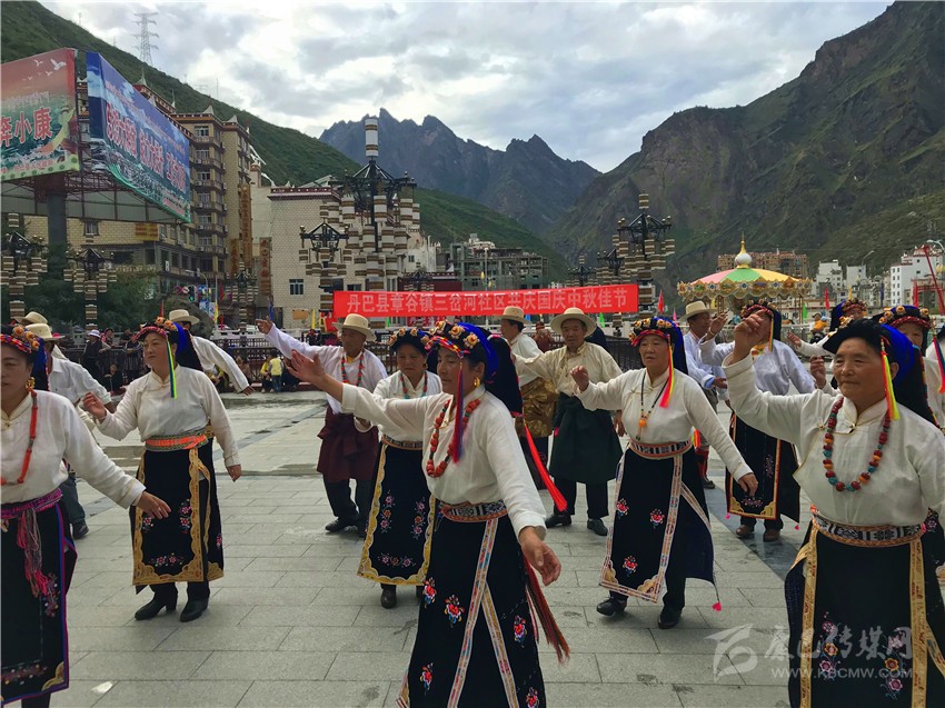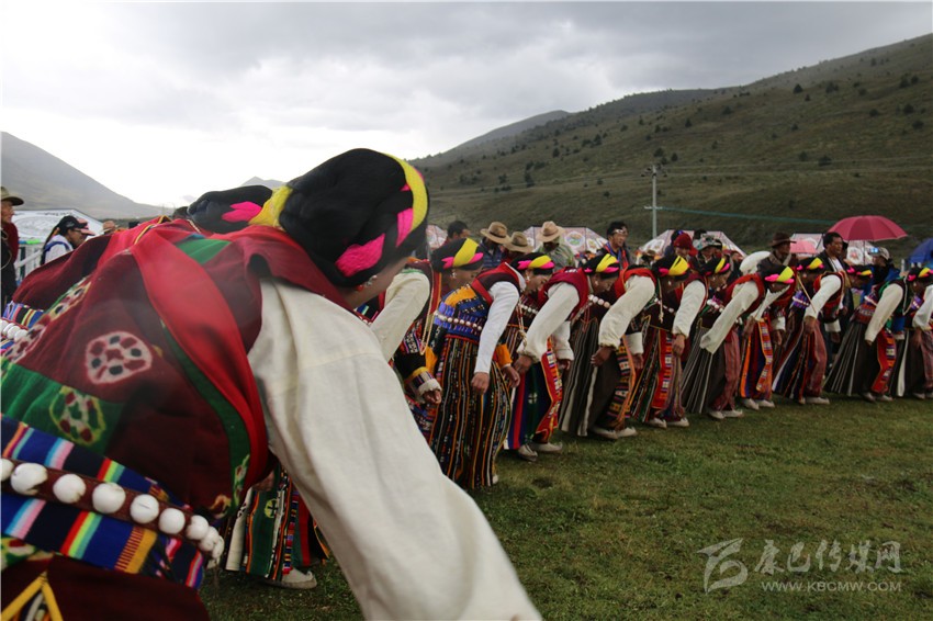 10月2日,在木雅鍋莊悠揚(yáng)的旋律和輕盈的舞步中,歷時(shí)兩天的“2017康定情歌國際音樂節(jié)”盛大開幕,作為“五大民俗展演”中的特色民俗歌舞表演部分,木雅鍋莊吸引了眾多游客的關(guān)注。木雅鍋莊來源于木雅人的日常生產(chǎn)和生活,是當(dāng)?shù)剞r(nóng)耕文化習(xí)俗的重要表現(xiàn),表演服飾多以棕紅色外套,紅、白色襯衫為主,表演者多佩戴紅頭繩、珊瑚、金銀等裝飾物。舞蹈分男女兩組,列隊(duì)圍桌成圓形,皆彎腰垂首隨領(lǐng)唱歌聲而舞。男組舞姿氣勢豪放,女組舞姿委婉優(yōu)雅。唱腔宛轉(zhuǎn)悠揚(yáng),吸引了在場觀眾冒雨駐足觀看,有的甚至情不自禁隨著舞群踏起了舞步,融入到康巴文化的神秘魅力當(dāng)中。