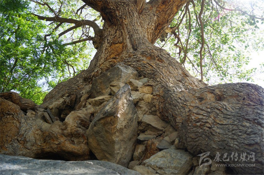 站在藏寨中間,遠(yuǎn)遠(yuǎn)就可以看見那棵枝繁葉茂的桑樹拔地而起,覆蓋住了幾百平米的大地,近了近了,眼前的樹和石頭清晰的出現(xiàn)在面前,在一塊高約三米的巨石上,長著一株高達(dá)10余米的桑樹,樹冠掩映著200多平米的地面。在這棵樹下,能真切的感受到“廳前多古樹,有拏云攫石之勢”之意境。桑樹的主根深入石縫之中,而幾支碗口粗的側(cè)根則在石面上攀爬,將整塊石頭嚴(yán)嚴(yán)實(shí)實(shí)地包裹起來,有的側(cè)根直接伸進(jìn)石塊底部的土地里,而有的側(cè)根則鉆進(jìn)狹小的石縫中,由于受到石片的擠壓,原本粗壯的樹根呈現(xiàn)扁平狀,一旦脫離了石縫的夾裹,樹根變得遒勁有力,猶如蛟龍出水。這些樹根在巨石上盤根交錯,組成一個整體,就像是一個巨人,盤膝而坐。往上,桑樹枝干與樹根一樣旺盛,黑色的樹皮布滿了裂紋,仿佛是歲月的皺紋。樹干之間有幾個大小不一的樹洞,里面裝填著白色的石塊,據(jù)說,這是信徒們將自己的心愿附注在白石上,希望借助神樹之力送達(dá)天庭。再往上,可以看見在枝干上的分叉處,猛地一下涌出許許多多多鮮活的枝葉,透露出綠綠的光芒。越往上,枝椏越密,厚厚的枝葉便疊加在一起,組成綠葉搭建的棚頂。在這高大茂盛的桑樹里,雖然沒有桑椹可食,然而因為有綠葉樹叢的庇護(hù),這里儼然成了鳥雀的天堂,各色鳥雀便棲息在樹枝間,發(fā)出愉悅的歌聲,張開靚麗的羽翅,在樹叢里你追我趕,上下飛舞,對不速之客仿佛并不在意,有時候落下來,在地面上啄食祭祀時所灑落的青稞、麥粒等糧食,接著又撲閃著翅膀飛向樹巔。
