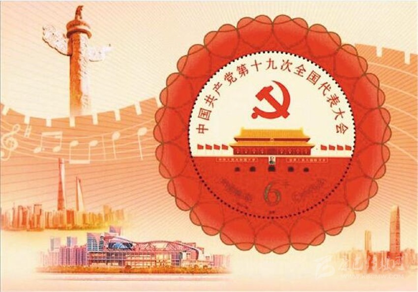10月18日發(fā)行的《中國共產(chǎn)黨第十九次全國代表大會》紀念郵票小型張。