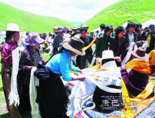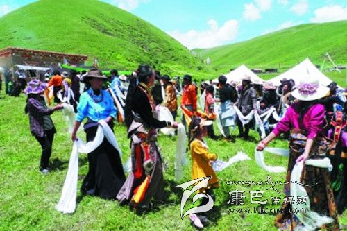 剛走進宗塔壩子,記者便意識到一個人想象力的貧乏,現(xiàn)實中的宗塔草原以一種與眾不同的美把一個人的目光悄悄托起。四周長滿牧草的小山像溫順的花瓣,靜靜包裹著那一片平坦的壩子,如果一個人眺望的目光足夠高足夠遠,山和壩子的造型會讓人聯(lián)想到一朵蓮花,而壩子里小點般的帳篷就像一顆顆蓮子,世世代代的宗塔人便在這蓮花般盛開的天地里穿行、繁衍生息。