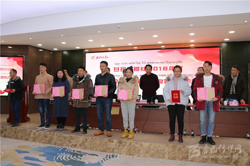 在正式授課之前,甘孜日報社分別為“2018年度優(yōu)秀通訊員”、“藏文全媒體中心紀念改革開放40周年藏文散文征文比賽”獲獎?wù)哳C發(fā)了榮譽證書,現(xiàn)場響起熱烈的掌聲。