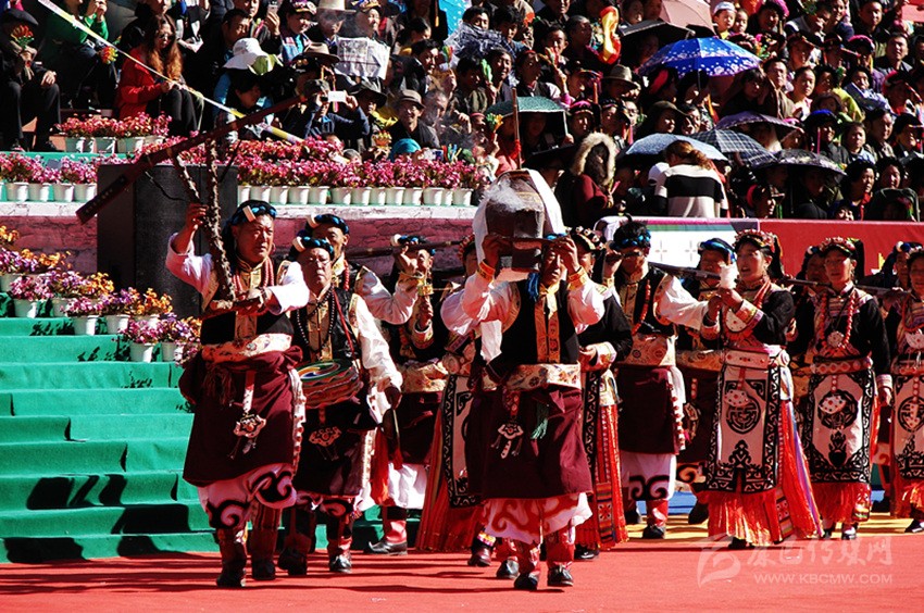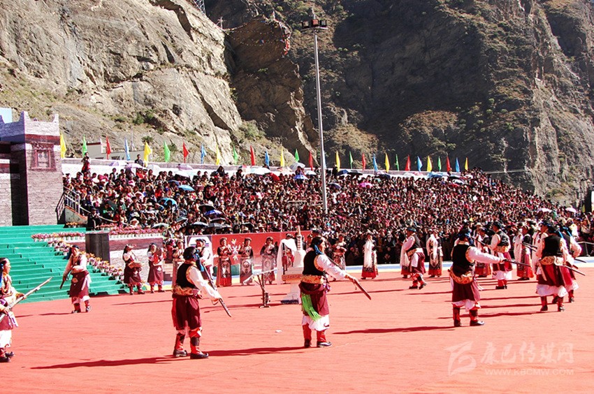 槍舞,嘉絨語中稱為“訥沖呷兒”,主要是在祭祀、集會、節(jié)日時表演的一種近似于戰(zhàn)術的舞蹈。在舞蹈中,舞者圍成一個圓圈,手持明火槍,明火槍,是最早的一種真正適于在戰(zhàn)場上為軍事目的使用的火槍。槍膛為一根圓柱形的鐵筒,筒口直徑為三厘米左右,在槍膛底部,有一個小圓孔伸出槍管,為導火管。如耳朵狀,因此也稱為槍耳,主要是用來點火的地方。圓筒固定在堅硬的木托頂端。這種輕火器或者說小型火炮使用的是形狀不規(guī)則的彈丸,即不大的實心彈,它緊貼大?;鹚幹瞥傻难b藥,借緊挨導火孔的火繩發(fā)射。