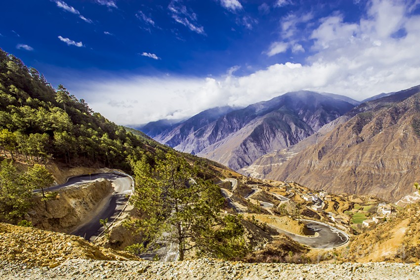 如今,所有鄉(xiāng)村通了硬化路,橫跨在金沙江上的十余座跨江大橋氣貫如虹,天塹變通途。過(guò)去我們下鄉(xiāng)時(shí),從日雨到曲雅貢,只有一條從因都?jí)伪澈蟮陌肷窖?。蒼茫大山,路上幾乎看不見(jiàn)一顆大樹,也找不到一滴水源。從山腰看江畔的因都?jí)危挥袃蓱羧思?,幾株綠樹總令焦渴難耐的我們望“綠”興嘆!下山走到金沙江邊,熾烈陽(yáng)光從河灘上反射,火辣辣照在臉龐和皮膚,熱浪令人窒息,感覺(jué)目的地遙不可及?,F(xiàn)今,干部下村完全不需要走路,走路下鄉(xiāng)對(duì)年輕人來(lái)說(shuō)簡(jiǎn)直不可思議。公路像一條飄帶環(huán)繞山間,使散落在峽谷中的村寨愈發(fā)展現(xiàn)出欣欣向榮的新風(fēng)貌。