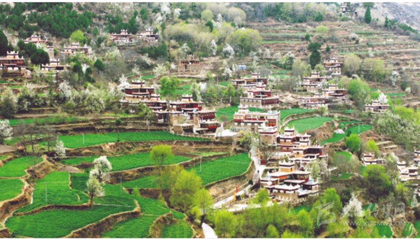 甲居,藏語是“百戶人家”的意思。實際上甲居藏寨分為一村、二村、三村共150余戶人家,700多人口,甲居藏寨所在地形如一個面積為5平方公里的大盆,大盆斜倚卡帕瑪群山,一棟棟外形別致、色彩鮮艷的典型嘉絨藏式民居錯落有致地從山腳一直排到半山。甲居人一代一代修造的梯田點(diǎn)綴民居之間,顯示出別具一格的田園韻味。茂密的柏樹掩映著民居,這些別致的民居不象故宮規(guī)模對稱,也不象蘇州園林隨興布局。碉樓式的民居雖無嚴(yán)格的統(tǒng)一規(guī)劃,但卻似乎不是隨意而建,每棟民居都有它獨(dú)特?fù)屟鄣娘L(fēng)格。正是這些別具一格的座座碉樓民居,構(gòu)成甲居藏寨的精妙絕倫。民居外所立的經(jīng)幡以及房頂隨風(fēng)飄動的瑪尼旗,又為恬靜如詩的鄉(xiāng)土民居增添了無限神秘的色彩。祥云籠罩山頂,溪水潺潺環(huán)流,山腳滾滾河流,山水渾映,天水合一,筆者一行不由驚嘆,甲居藏寨 ,名符其實的人間仙境,世外桃源!先前道路險峻留在心底的驚懼早已一掃而光,一行人激動著迫不及待地?fù)渖碛诿啦粍偈盏南删持小?/p>
