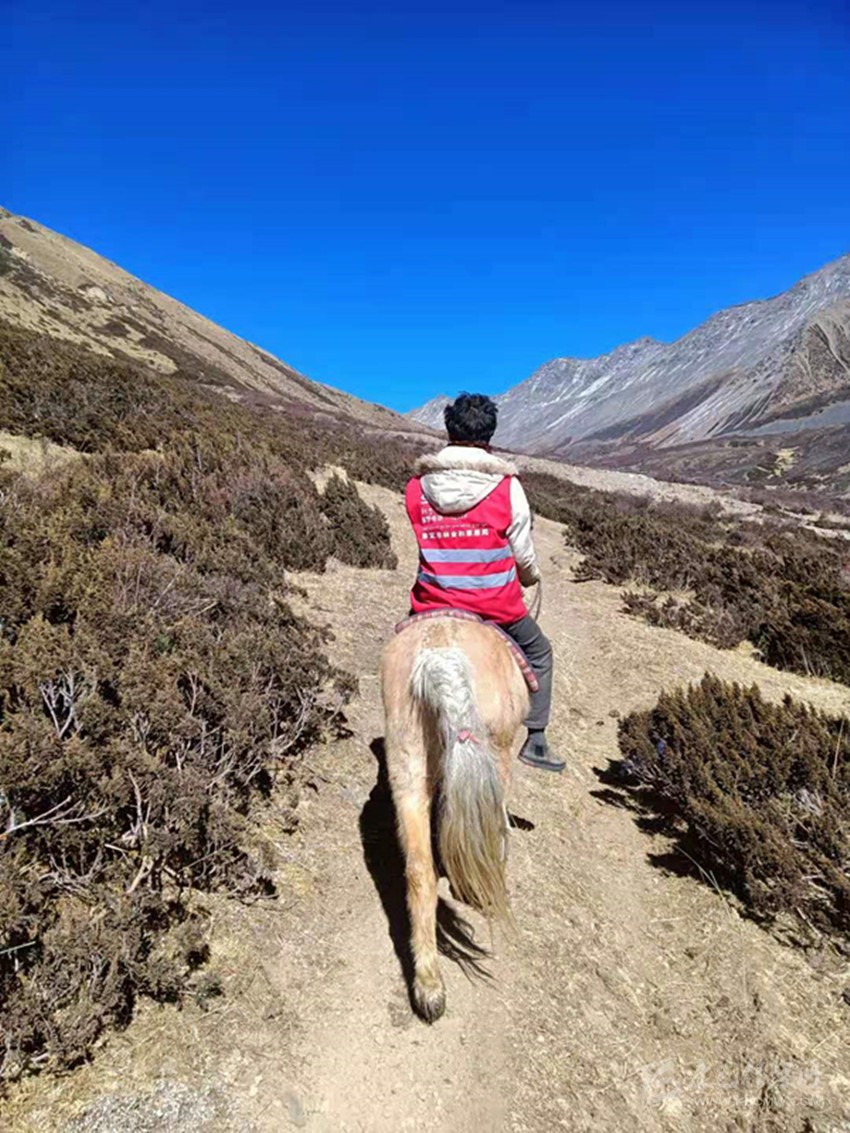 而為了守護(hù)游人們心中的“詩和遠(yuǎn)方”,巡護(hù)隊(duì)經(jīng)年在“原地”打轉(zhuǎn)。76歲的降澤,是巡護(hù)隊(duì)里年齡最大的隊(duì)員。近4年時(shí)間,他參與了60多次全程巡護(hù),騎馬行程4500多公里,卻從未踏足山外的世界。