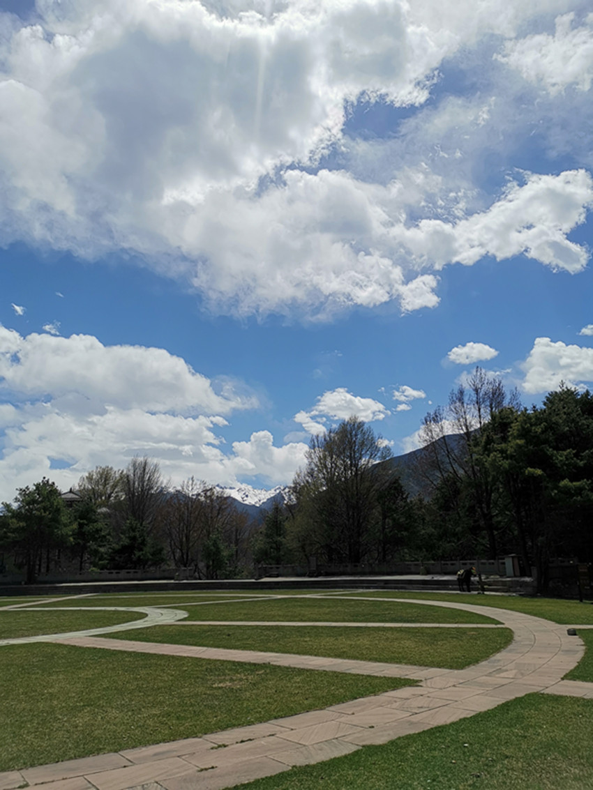 回到家后,我隔窗再望獅子巖,那濃蔭綠樹已遮得嚴嚴實實,根本看不到獅子巖的影子,倒是濃蔭中,隨風飄動的彩色經(jīng)幡時隱時現(xiàn)。