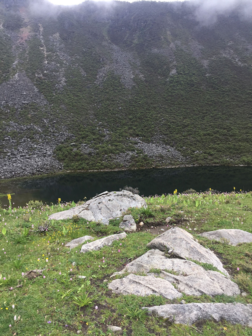 銀珠聽到南吉即興唱出的山歌那么溫婉動(dòng)人,被風(fēng)吹冷的眼睛里落下了兩顆溫?zé)岬臏I水。她掩飾住自己的情緒,從粗重的呼吸里回答:“好?。 蹦霞牭姐y珠對(duì)唱,臉上綻放出笑容。她們的腳底不再發(fā)出響聲的時(shí)候,就是已經(jīng)走到了兩座大山之間的那片山谷。一層淺雪里露著青草、一叢叢開紫花的小杜鵑,還有密密匝匝的矮腳柳。銀珠站在一塊土包上,她打開雙臂,一臉明媚地對(duì)著南吉說(shuō):“阿姐,這片沒有積雪的山谷就是我送給你的禮物?!?/span>
