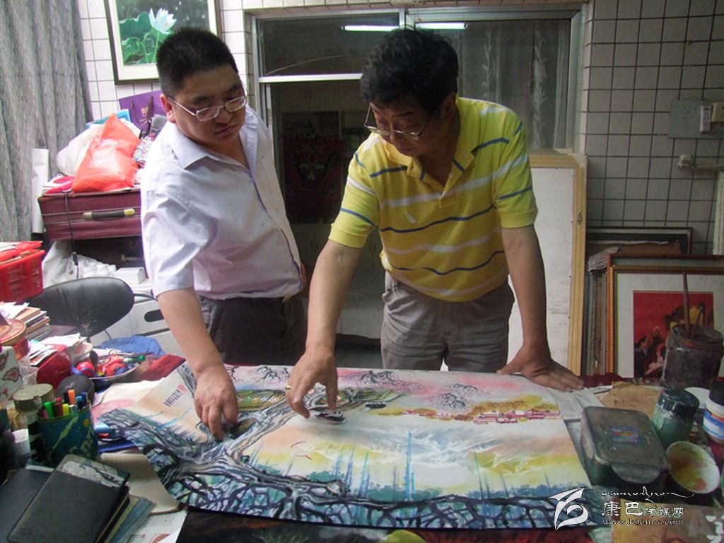 得知記者在《成都日報(bào)》學(xué)習(xí),文光裕先生便盛情相邀記者去他家里做客。7月9日,記者到雙流采訪了文光裕先生。文光裕先生詼諧幽默,學(xué)說逗唱、琴棋書畫樣樣都懂。他具有平和的心態(tài),所以看起來特別年輕,記者見到他的時(shí)候,很難把古稀老人與他聯(lián)系起來。人未見,笑聲先到,文光裕先生爽朗的笑聲感染了記者。他正在創(chuàng)作新舊康定對比繪畫作品。雄奇險(xiǎn)峻的郭達(dá)山下,湍急的河水,密密麻麻的民房,這就是他記憶中上個(gè)世紀(jì)50年代的康定,雖然長期居住在內(nèi)地,但文光裕先生思鄉(xiāng)心切,用繪畫的形式來寄托對家鄉(xiāng)的思念。