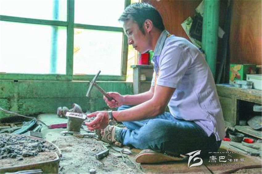 從金沙江支流贈曲河溯流而上,不到半個小時便可到白玉縣河坡鄉(xiāng)。就是這個不起眼的“小地方”,從1300多年前便開始鑄造兵器,曾被譽為“格薩爾王的兵器庫”。2008年,“藏族金屬鍛造技藝”被列入國家級非物質(zhì)文化遺產(chǎn)名錄,其中便包括以河坡為代表的“藏刀鍛制技藝”。 在記者的想象中,河坡鄉(xiāng)應(yīng)該是一派作坊連片、熱火朝天、叮叮當當?shù)氖止ぶ圃靾鼍?。然而,當記者來到這里,卻沒有看到這樣的景象。原來,河坡鄉(xiāng)的手工藝生產(chǎn)模式以家庭作坊為主,每家每戶的“工作室”常常設(shè)在自家房屋二樓一角。在白玉河坡鄉(xiāng)每個家庭作坊,通常都有自己擅長的專業(yè)產(chǎn)品和特色。例如,手工藝人根秋丹貞擅長制作佛具, 伍金則擅長打制藏刀。其他如村多、麥達、麥學等各個村寨,還分散著諸多以生產(chǎn)馬具、飾品、日常生活用品等為主的家庭作坊。