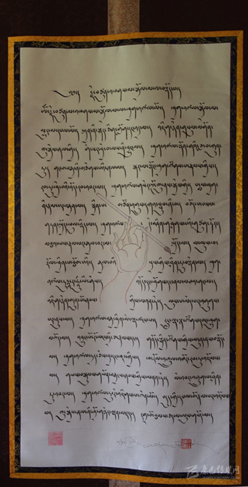 談到藏文書法作品,昂旺曲批喜歡用諸如“淳樸、干凈、善良”的字眼形容藏文書法作品的風(fēng)格?!耙粋€字就是一個人,字有肉也有骨頭?!边@是昂旺曲批對“德珍派”書法的理解,在昂旺曲批眼中,藏文字都是有生命的,需要寧心靜氣方能通過手中的筆尖,彼此呼應(yīng)。