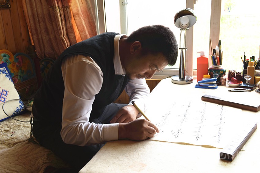 “德珍書法原本就是集歷史上藏文書法大師作品精華而成。”這些年,昂旺曲批呆在理塘,潛心研究當(dāng)代各個藏文流派名家的書法作品,同時和內(nèi)地的漢字書法名家保持著聯(lián)系。他希望自己沿著“集眾家所長,兼收并蓄”的精神傳統(tǒng),把“德珍派”藏文書法的傳統(tǒng)發(fā)揚廣大,同時能有所創(chuàng)新。