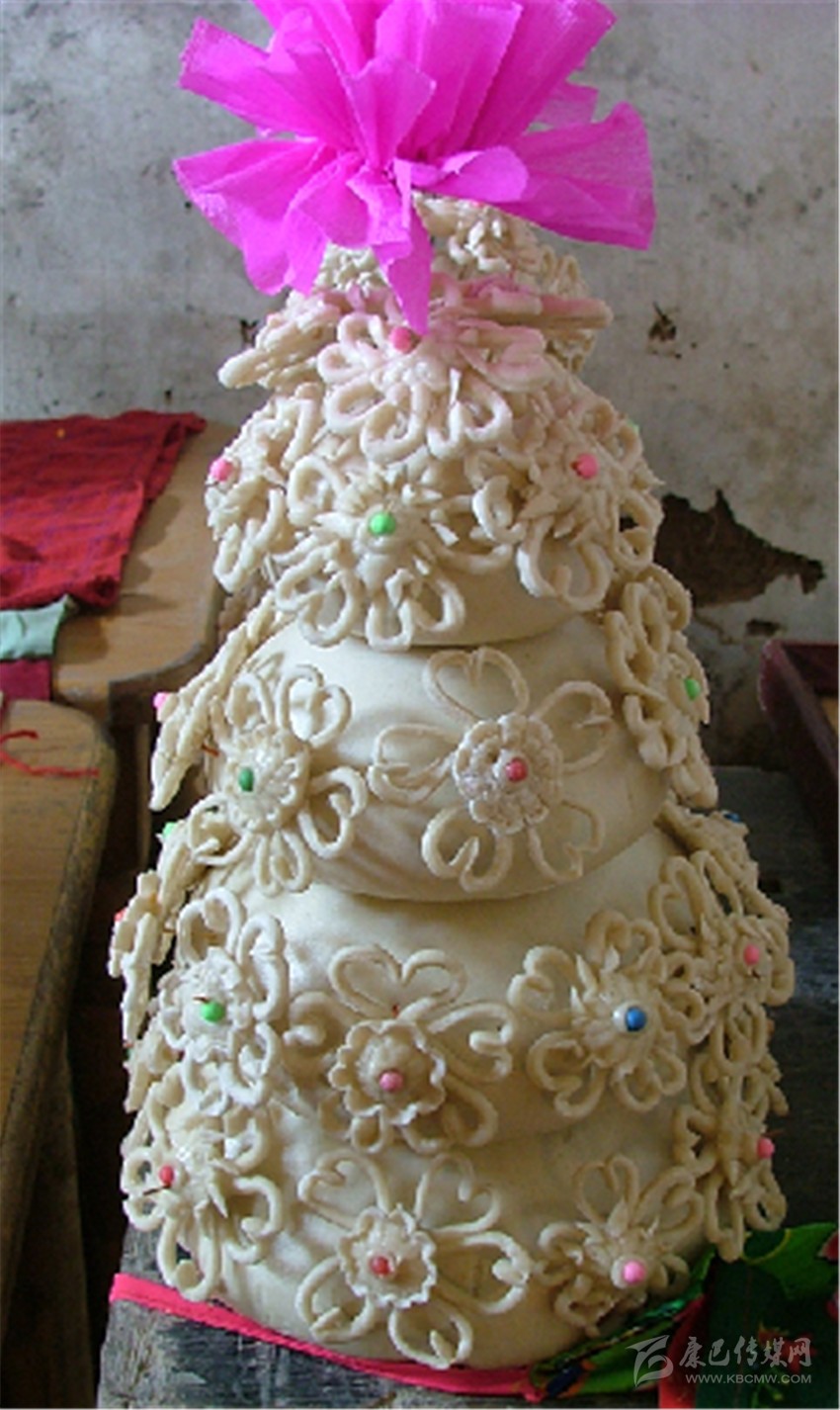 何謂“花饃饃”,顧名思義,就是用面粉做成的一種夾心并模印圖案的薄餅。一般“花饃饃”的厚度約一指厚,直徑為13厘米左右。制作“花饃饃”時(shí),一定要用新打出的本地面粉(用新面意為喜慶豐收)并不加發(fā)酵的老面(主要防止饃饃以及饃饃上的圖案變形),只加少許蘇打以水揉面即可。餡兒是由藏族特有的食品酥油、糌粑、奶渣等拌上紅糖或白糖而成。先將揉好的面粉揉成巴掌大的面坨,把調(diào)好的心子包在面坨內(nèi),然后壓平,盡量使它變成圓形,并在“花饃饃”的最中心粘一小片青綠的蘿卜葉,然后用雕有各種圖案的印板印上圖案。印板圖案多為三條圓圈或藏族美術(shù)中常有的萬(wàn)吉祥等,圈內(nèi)雕有玉兔、鹿子、獐子吉祥物等,一般是一對(duì)玉兔相對(duì)而立,或是鹿子休閑躺于青草之上,或是兩朵鮮花對(duì)開,或是……再用手將“花饃饃”的周邊勒成各種花邊,并點(diǎn)上幾點(diǎn)食用紅點(diǎn)(紅點(diǎn)表喜慶,如年內(nèi)曾遇喪事則不點(diǎn)紅點(diǎn))。最后將成形的“花饃饃”置于平鍋底在火上烘成即可。烘好后的“花饃饃”外形呈圓形,象征圓月,“圓月”里有玉兔等吉祥圖,有象征喜慶吉祥的紅,有象征春天的綠,極為鮮麗好看而又香甜味美,叫人垂涎。但做好后不能立即實(shí)用,首先要選兩個(gè)最大最好的來敬月亮,敬菩薩,要等敬月亮,敬菩薩后,中秋這天才能吃,并伴以水果等物贈(zèng)送鄰里、親朋。據(jù)說這是為了促進(jìn)友誼,讓大家品嘗共享吉祥。