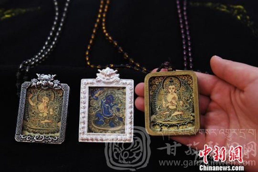 張馨藝說,微型唐卡完成后,經(jīng)精美銀盒裝飾后,不僅可以佩戴于身上,還可以掛在家中、汽車?yán)铮斜F桨驳囊馑?。相對于巨幅唐卡,價格更容易被民眾接受,也有收藏的價值。