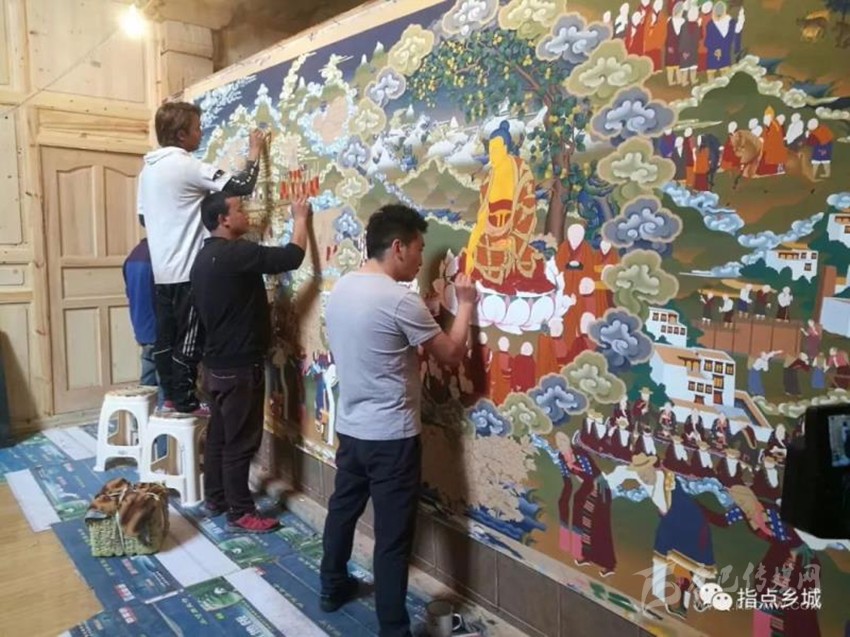 鄉(xiāng)城民間相傳,當時西藏來的手工藝匠人雖都是格魯派信奉者,卻也對蒙古人的暴行多有不滿。在軍隊返回西藏時,未與蒙古軍隊一并返藏,而是選擇留在了鄉(xiāng)城。他們在鄉(xiāng)城收徒授業(yè),也將流行于拉薩的勉唐畫派帶到了鄉(xiāng)城。