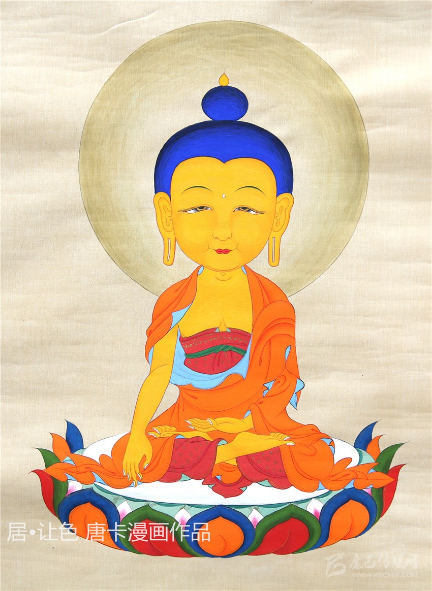 唐卡是藏族最具代表性的藝術(shù)門類之一,在其千年的傳承歷史中吸收融合了印度、尼泊爾等多地的藝術(shù)元素,發(fā)展成為極具雪域特色和審美價(jià)值的藝術(shù)形式。傳統(tǒng)唐卡缺乏立體感和形象感,畫面層次模糊,人物形象單薄,不利于民族文化傳承,“對(duì)于不懂畫的人來(lái)說(shuō),這種畫法他們看不懂?!被诖?,居·讓色對(duì)唐卡繪畫技法作了改良,結(jié)合現(xiàn)代漫畫,以寫實(shí)的手法,實(shí)現(xiàn)活態(tài)傳承、永續(xù)流傳目的。
