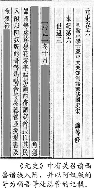 今屬康定縣的木雅,又分為上木雅和下木雅。下木雅的色烏絨地方,是木雅王曾住過(guò)的地方之一。民間又稱(chēng)住在這里的王為“西吳甲布”(即“西吳王”),進(jìn)而又附會(huì)出個(gè)“西吳國(guó)”來(lái)。從木雅貢嘎西邊那條叫色烏絨的山溝往南到打箭爐,正如傳說(shuō)的那樣,早年一般要走三天?!对贰酚小昂任帷钡挠涊d,“喝吾”“色烏”都是藏語(yǔ)的音譯,藏語(yǔ)“絨”為山溝之意,指的就是這個(gè)色烏絨。元世祖忽必烈征滇,沿大渡河、金沙江而進(jìn),得到沿途部落首領(lǐng)的大力支持。長(zhǎng)河(大渡河)西的“西吳王”自然也不例外。所以在至元四年(公元1267年)“冬十月壬戌,魚(yú)通巖州等到處達(dá)魯花赤李福,招諭西番諸族酋長(zhǎng)以其民入附,以阿奴版的哥等為喝吾等處總管,并授璽書(shū)及金銀符?!钡玫缴w有皇帝大?。ㄓ癍t)文書(shū)和金銀符,朝廷正式任命為“喝吾”總管的酋長(zhǎng)(木雅王)阿奴版的哥,之后從色烏絨遷到打煎爐,不僅成為朝廷認(rèn)可的“長(zhǎng)河西土官”,還作了“四川分省右丞”。我們是否可以判定,“木雅王”遷爐的時(shí)間應(yīng)在至元四年(公元1267年)之后?1267年距今740多年,以此推算,如前文所說(shuō):今天西爐(康定城)的歷史,大約為700年!再者,若從宋代的“卡拉國(guó)”算起,說(shuō)“明正”歷四十二代,不能說(shuō)沒(méi)有一點(diǎn)來(lái)頭。