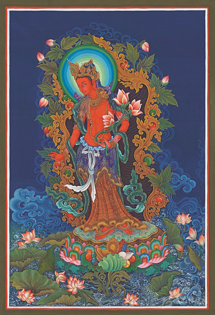 元朝以后,尼瓦爾唐卡慢慢淡出了中原,內(nèi)地民眾對這門優(yōu)秀的繪畫藝術(shù)也慢慢缺乏詳細(xì)認(rèn)知。而在今天,古老神秘的尼瓦爾唐卡在距離“工巧天”阿尼哥大師北京傳藝的八百年后,再次閃耀于我們的視野里。視覺只是一扇窗,但當(dāng)你在尼瓦爾唐卡前面開啟了這扇窗戶,您便開啟了眼耳鼻舌身意,于是視覺、聽覺、嗅覺、味覺、觸覺也就一起活躍起來了。讓我們好好享受尼瓦爾唐卡藝術(shù)帶來的精神盛宴吧!我相信其率真且極具生命活力的獨(dú)特美感必將深深地打動尊貴的您!