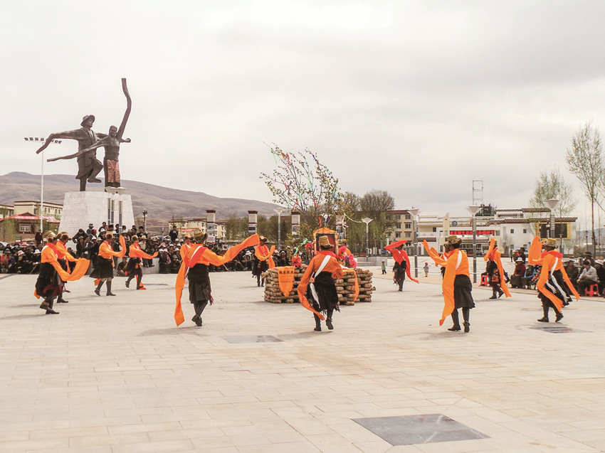 座落在雅礱江畔的甘孜縣,春天是十分美麗的,當(dāng)江水解除冰凍,大山披綠的時(shí)候,會(huì)聽(tīng)到滿山的布谷鳥(niǎo)鳴唱,草原上鮮花盛開(kāi)。踢踏舞動(dòng)的銅鈴聲極像草原吟唱的歌喉,讓人聞之心醉,醉在那走向春天的踢踏。