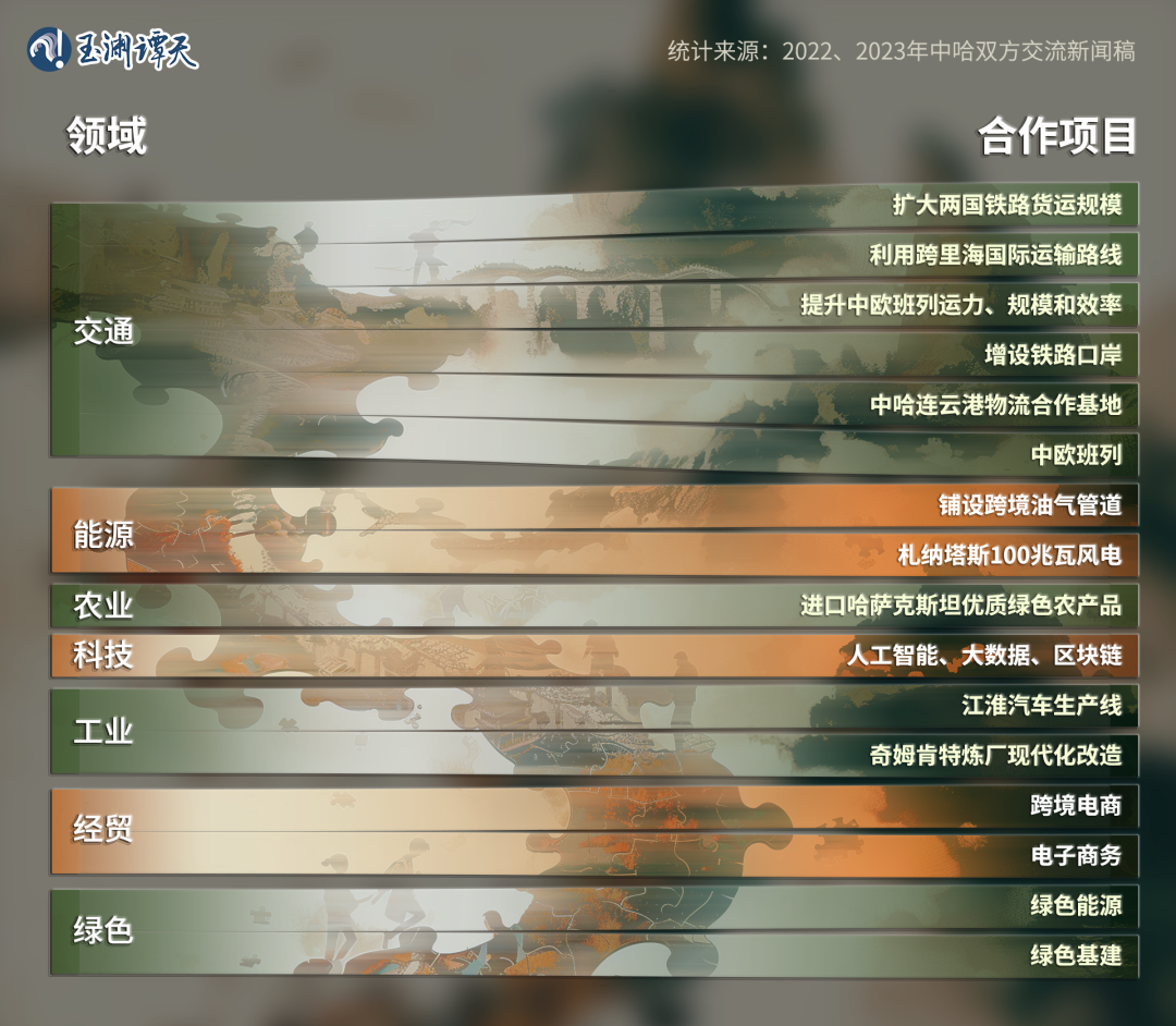 譚主整理了2022年和2023年中哈雙方交流的新聞稿,并對(duì)其中涉及到的合作項(xiàng)目,進(jìn)行了編碼。