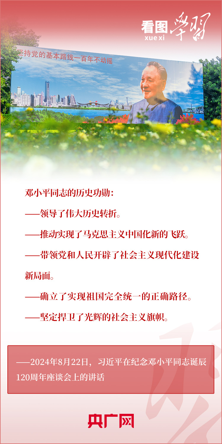 8月22日,習(xí)近平總書記在紀(jì)念鄧小平同志誕辰120周年座談會(huì)上發(fā)表重要講話指出,鄧小平同志的歷史功勛是全方位的、開創(chuàng)性的,對(duì)中國(guó)和世界的影響是深刻的、長(zhǎng)遠(yuǎn)的??倳洀?qiáng)調(diào),對(duì)鄧小平同志最好的紀(jì)念,就是把他開創(chuàng)的中國(guó)特色社會(huì)主義事業(yè)繼續(xù)推向前進(jìn)。我們要緊緊圍繞以中國(guó)式現(xiàn)代化全面推進(jìn)強(qiáng)國(guó)建設(shè)、民族復(fù)興偉業(yè)這個(gè)中心任務(wù),繼往開來,奮發(fā)進(jìn)取。一起來學(xué)習(xí)!