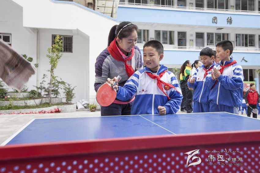 11日下午,考察團(tuán)來到康定縣東大街小學(xué),師生們和牛劍鋒、汪鑫這兩位世界冠軍切磋起了球技。當(dāng)體操冠軍呂詩蒙帶領(lǐng)孩子們跳起韻律十足的健身街舞時,全校600多名學(xué)生用笑容和吶喊將校園點燃。牛劍鋒委員認(rèn)為,培養(yǎng)優(yōu)秀的體育后備人才,不僅需要專業(yè)青少年選手的努力,也需要夯實青少年體育的群眾基礎(chǔ)。