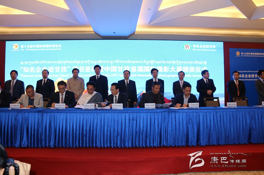 本網(wǎng)訊 (記者 秦松 陳雪峰 文/圖) 10月25日,“知名企業(yè)進甘孜”項目簽約暨中國甘孜首屆國際攝影大展頒獎儀式在成都舉行。項目簽約儀式上,我州按照“一優(yōu)先、二有序、三加快”的產(chǎn)業(yè)發(fā)展思路,精心篩選包裝推出了具有一定代表性和廣闊市場前景的148個估算總投資560億元的招商項目,主要涉及旅游業(yè)、文化業(yè)、特色農(nóng)牧業(yè)、中藏醫(yī)藥業(yè)、工業(yè)、服務業(yè)等產(chǎn)業(yè)。邀請國內(nèi)外知名企業(yè)100余家;簽約項目23個,投資額87.28億元。其中:旅游類9個,投資額41.68億元;能源類5個,投資額32.8億元;農(nóng)牧業(yè)類3個,投資額10.6億元;基礎設施類4個,投資額2.2億元;協(xié)議簽約2個。