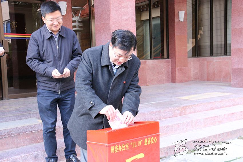 募捐儀式上,胡昌升對(duì)州委辦公室干部職工積極踴躍參與愛心慈善活動(dòng)給予了充分肯定,并希望全州廣大干部職工和社會(huì)各界愛心人士要大力弘揚(yáng)“甘以愛人、孜求慈善”的甘孜愛心慈善精神,積極參加到“11·19愛心慈善一日捐”活動(dòng)中來,為全州困難群眾伸出援手、獻(xiàn)上愛心、作出貢獻(xiàn)。