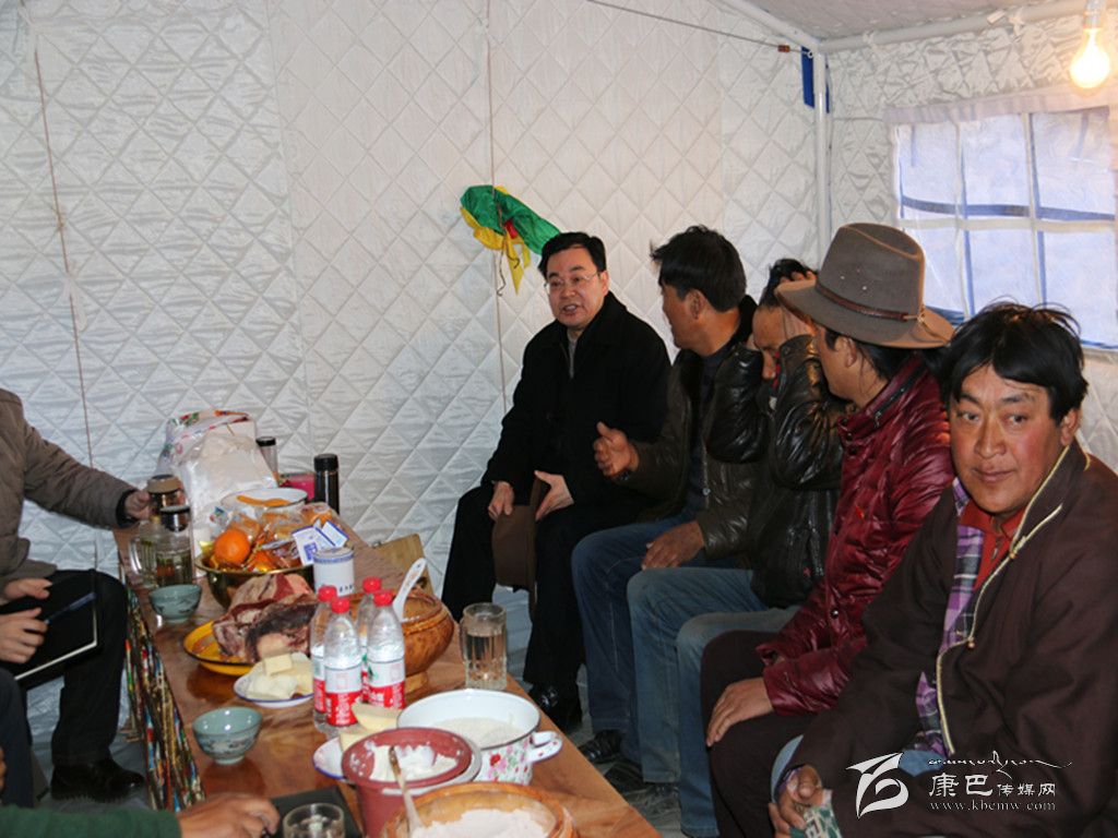 魚子西村緊鄰康定“11·22”6.3級地震震中,在此次地震中農(nóng)房受到不同程度的破壞。來到魚子西三村,鮮紅的黨旗高高飄揚(yáng)在災(zāi)區(qū)上空,成為災(zāi)區(qū)人民的希望,成為災(zāi)區(qū)人民奮然前行的方向。在溫暖的棉布帳篷里,胡昌升聽取了瓦澤鄉(xiāng)黨委、政府和魚子西一村、二村、三村抗震救災(zāi)和過渡安置工作匯報。