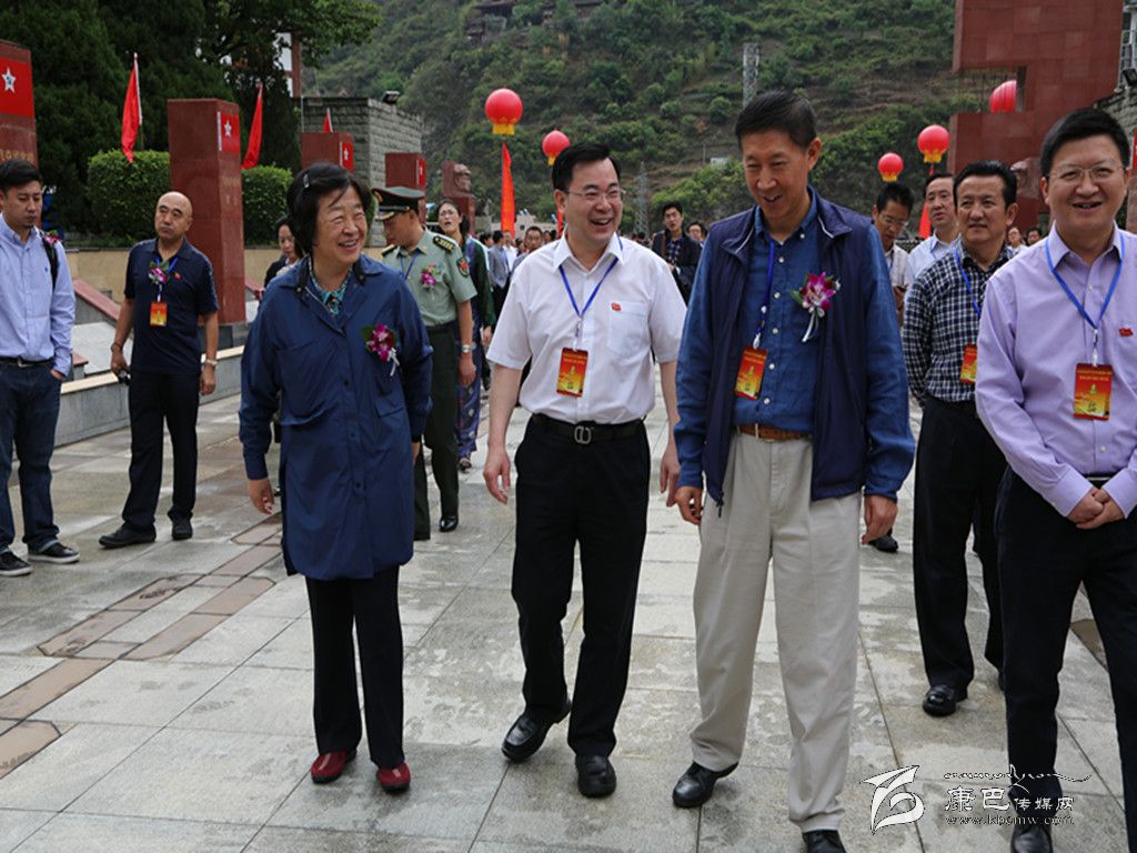 賀龍將軍之女賀曉明、楊成武將軍之子楊東明與州委書記胡昌升步入紀(jì)念大會(huì)現(xiàn)場。