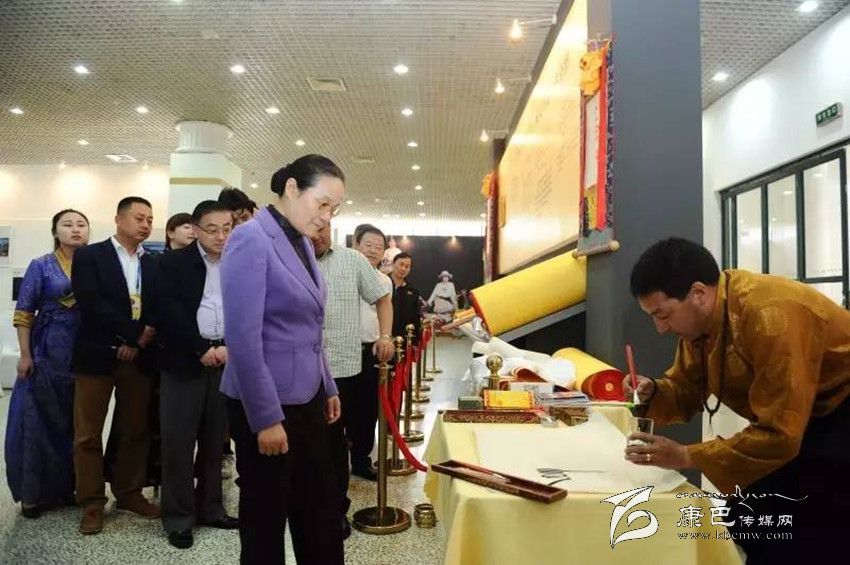 在展覽中心,趙雯在州政府副州長葛寧等的陪同下,觀看了甘孜旅游宣傳片,參觀了甘孜旅游圖片展、藏傳佛教宮廷精品文物展、“藏藝通”旅游商品展和藏文書法展,仔細聽取講解介紹,對甘孜州舉辦此次活動給予了充分肯定。趙雯還興致勃勃地觀看了四川省級藏文書法傳承人、著名的藏文書法家巴松鄧珠現(xiàn)場藏文書法表演,品嘗了甘孜州康定藍逸高原食品有限公司的高原特色產(chǎn)品。