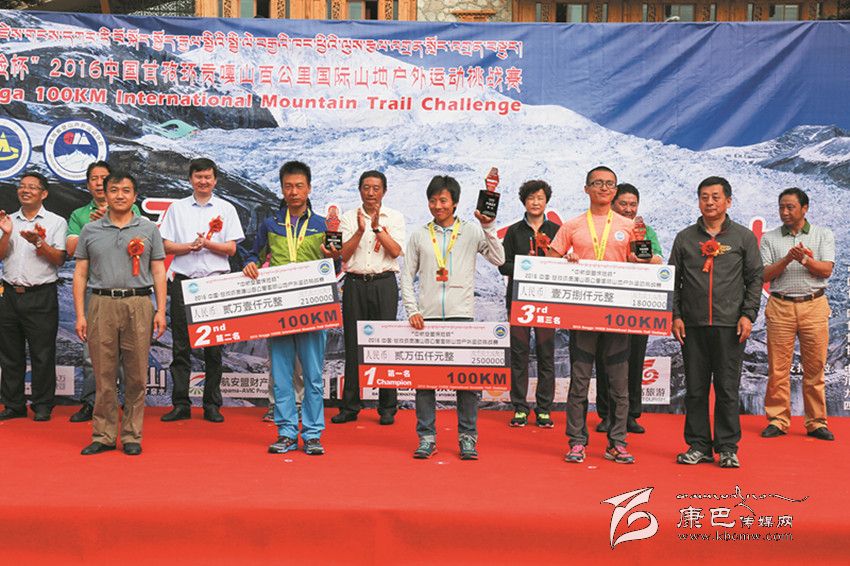 27日凌晨5時(shí),參賽選手從康定情歌廣場(chǎng)出發(fā)后,運(yùn)動(dòng)員們不畏艱險(xiǎn),你追我趕,各顯神通,拼盡全力,最終完成了50公里和100公里的賽程。經(jīng)過激烈的角逐,實(shí)力強(qiáng)勁的運(yùn)艷橋以13小時(shí)零48秒的成績(jī)將男子組100公里冠軍獎(jiǎng)牌收入囊中,姚妙以14小時(shí)39分32秒的成績(jī)獲得女子組100公里冠軍;50公里男子組、女子組冠軍分別被明定邦和牛麗華摘取,成績(jī)分別是5小時(shí)38分12秒和6小時(shí)58分38秒。閉幕式現(xiàn)場(chǎng),賽事組委會(huì)為獲得各項(xiàng)賽事前三名的選手頒發(fā)了獎(jiǎng)金、獎(jiǎng)杯與獎(jiǎng)牌。