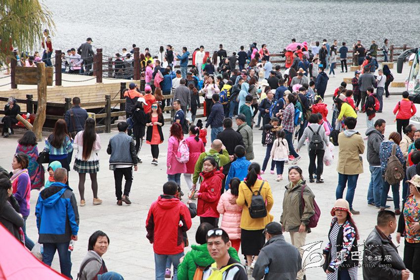 美景如畫游客忙合影。