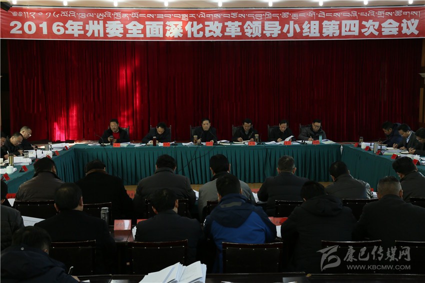 本網(wǎng)訊(記者 楊杰 文/圖)12月14日上午,州委書記劉成鳴在爐霍縣主持召開2016年州委全面深化改革領(lǐng)導(dǎo)小組第四次會議,學(xué)習(xí)傳達(dá)中央深化改革領(lǐng)導(dǎo)小組和省委深化改革領(lǐng)導(dǎo)小組相關(guān)會議精神,審議《甘孜州創(chuàng)新企事業(yè)單位民主管理制度改革方案》、《關(guān)于深化人才發(fā)展體制機(jī)制改革促進(jìn)全面創(chuàng)新改革驅(qū)動轉(zhuǎn)型發(fā)展的實施意見》等8個專項改革方案。