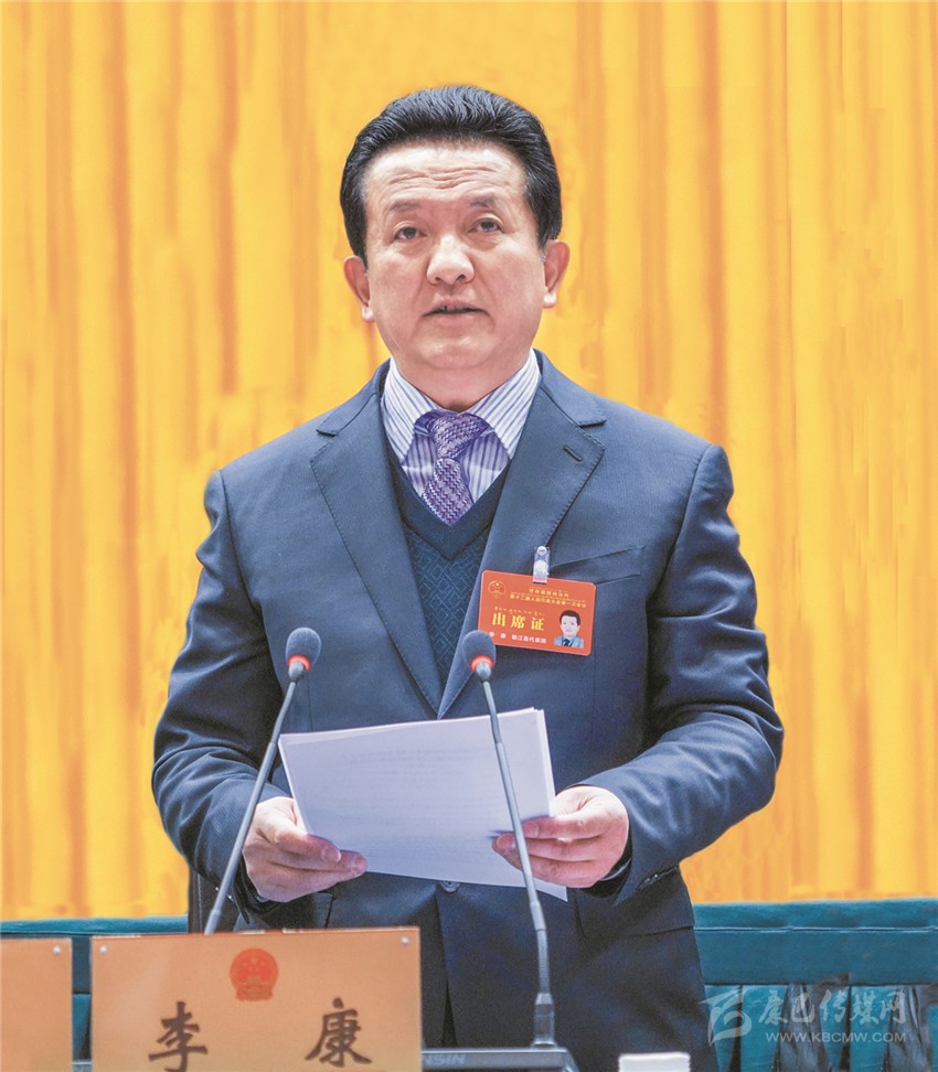 肖友才作政府工作報告。(本網(wǎng)記者 王明陽 張兵 攝)