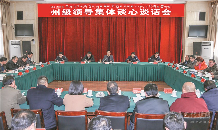 本網(wǎng)訊 (記者 楊杰 文/圖)1月12日上午,州委書記劉成鳴主持召開州級(jí)領(lǐng)導(dǎo)集體談心談話會(huì),與州委、州人大常委會(huì)、州政府、州政協(xié)班子成員集體懇談交流、溝通思想。他強(qiáng)調(diào),州級(jí)領(lǐng)導(dǎo)要進(jìn)一步統(tǒng)一思想,拼盡全力,擰成一股繩,匯聚一股氣,打好甘孜州的“翻身仗”,團(tuán)結(jié)帶領(lǐng)全州各族干部群眾,齊心協(xié)力完成州第十一次黨代會(huì)確定的目標(biāo)任務(wù),確保到2020年與全國、全省同步全面建成小康社會(huì)。