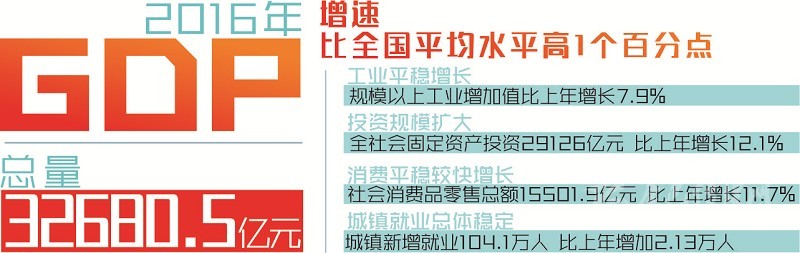 本網(wǎng)訊(記者 陳巖 梁現(xiàn)瑞 李龍?。?/span>1月22日,省政府新聞辦召開(kāi)新聞發(fā)布會(huì),發(fā)布2016年經(jīng)濟(jì)數(shù)據(jù)。經(jīng)國(guó)家統(tǒng)計(jì)局審定,2016年全省實(shí)現(xiàn)地區(qū)生產(chǎn)總值(GDP)32680.5億元,按可比價(jià)格計(jì)算比上年增長(zhǎng)7.7%,增速比全國(guó)平均水平高1個(gè)百分點(diǎn)。全省經(jīng)濟(jì)運(yùn)行呈現(xiàn)總體穩(wěn)定、穩(wěn)中有進(jìn)、穩(wěn)中有好的發(fā)展態(tài)勢(shì),實(shí)現(xiàn)“十三五”良好開(kāi)局。