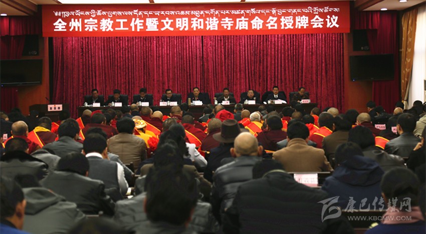 本網(wǎng)訊(記者 楊杰 文/圖)3月28日,全州宗教工作暨文明和諧寺廟命名授牌會議在康定召開。會議深入學(xué)習(xí)貫徹全國、全省宗教工作會議精神,深化對做好新形勢下宗教工作重大意義的認(rèn)識,總結(jié)經(jīng)驗、查找不足、部署工作,提升全州宗教事務(wù)依法管理水平,引導(dǎo)宗教與社會主義社會相適應(yīng)。會議對2016年達(dá)標(biāo)升級的文明和諧寺廟進(jìn)行了命名授牌。州委書記劉成鳴出席會議并講話,州政協(xié)主席向秋出席會議。