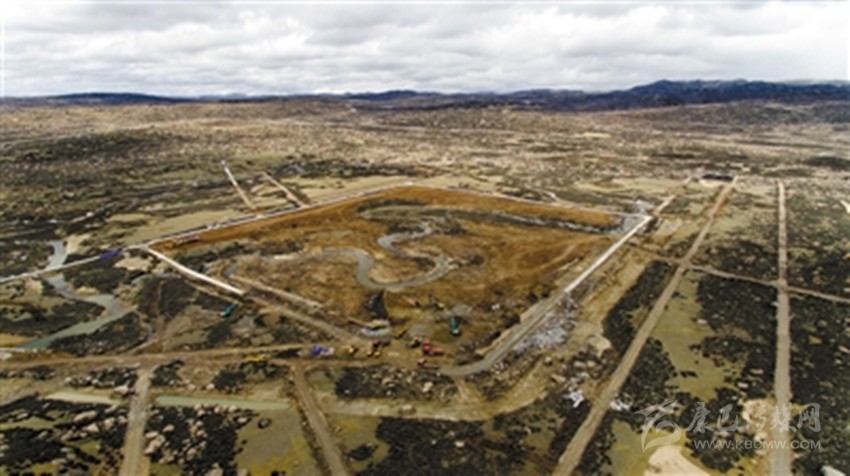 四川甘孜藏族自治州稻城縣海子山,平均海拔4110米。在散落著數(shù)米寬巨石的曠野上,一塊有10個足球場大的圓形區(qū)域已經(jīng)成型,挖土機忙著挖出3個“品”字形、深4.5米的巨型水池。