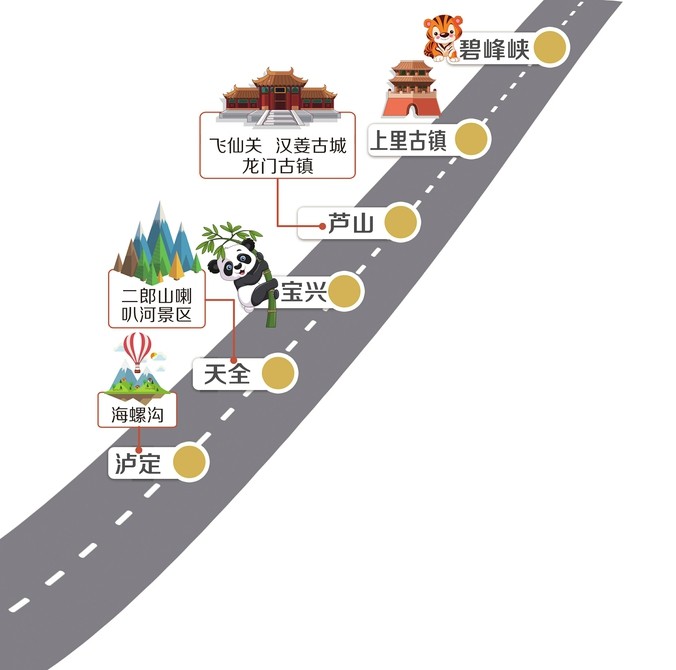 雅康高速雅瀘段玩樂(lè)示意圖。