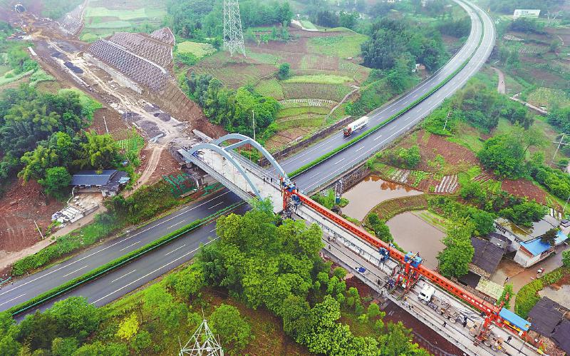 本網(wǎng)訊(王眉靈)4月24日14時許,川藏鐵路成雅段最后一片T梁穩(wěn)穩(wěn)落在樂(山)雅(安)高速公路大橋6-7號橋墩上。至此,由中鐵二局承建的川藏鐵路成雅段的1864片T梁架設(shè)圓滿完成,全線施工進入軌道鋪設(shè)攻堅階段。