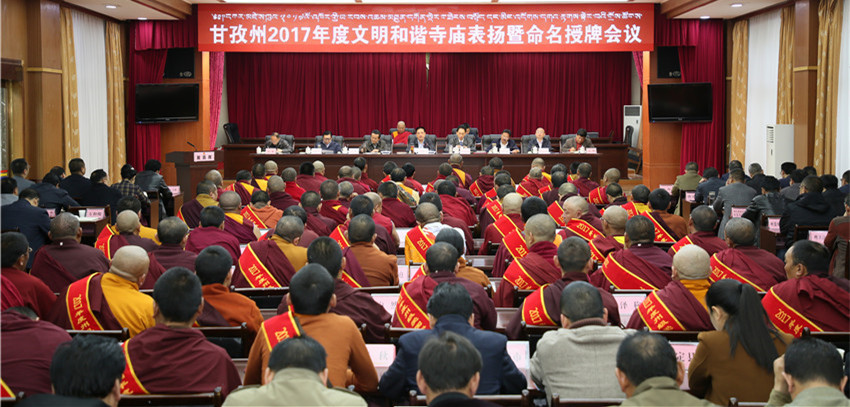本網(wǎng)訊 近日,州委、州政府召開會議為2017年度文明和諧寺廟命名授牌,并表揚(yáng)愛國守法模范僧尼。州委書記劉成鳴出席會議并講話。他希望,廣大僧尼對標(biāo)“政治合格、愛國愛教、遵規(guī)守法、持戒精修、團(tuán)結(jié)進(jìn)步、利益眾生”六個(gè)標(biāo)準(zhǔn)做好表率,教育引導(dǎo)廣大僧尼和信教群眾“感黨恩、愛祖國、守法制、奔小康”,積極推動宗教界與全州脫貧奔康和長治久安進(jìn)程相協(xié)調(diào)、與社會主義社會相適應(yīng)。州委副書記、州長肖友才主持會議。州人大常委會主任李康、州政協(xié)主席向秋出席。