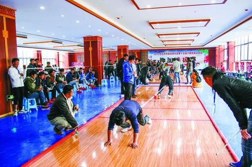 今年,我州將由115名運動員、教練員等組成11支運動隊,參與賽事設置的8個競賽項目和2個表演項目,其中有兩支隊伍將參與綜合類表演項目比賽。我州總參賽人數(shù)相比上一屆略有減少。我州參加綜合類表演項目比賽的節(jié)目是《瑪亞切通》和《炯動》。《瑪亞切通》譯為孔雀吃水,主要體現(xiàn)力量和平衡的動作;《炯動》取材于藏民族農村修建房屋時的勞動場面,以青年男女在勞動過程中載歌載舞對歌或比拼勞動成果、質量、進度為內容,主要比拼身體的力量和靈活度。我州參加競技類表演項目比賽的節(jié)目是《嘎久》。《嘎久》意為翻閱馬鞍或吉祥翻越,是藏族人民節(jié)日聚會時的一種競技體育活動,主要比拼靈活性、趣味性和技巧性。
