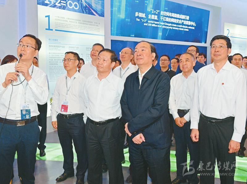 9月19日,中共中央政治局委員、中宣部部長黃坤明等參觀網(wǎng)絡(luò)安全博覽會。 川報記者 歐陽杰 攝