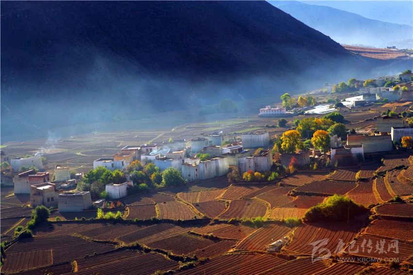 細(xì)數(shù)鄉(xiāng)城40年變遷,老人神采飛揚。鄉(xiāng)城是一幅畫,一幅展現(xiàn)人文與自然和諧美的畫。遠(yuǎn)方群山,村樹含煙,阡陌縱橫,白色藏房錯落有致,宛如陶淵明筆下“芳草鮮美,落英繽紛”的桃源畫境,在藍(lán)天白云之下,香巴拉鄉(xiāng)城靜謐如畫。