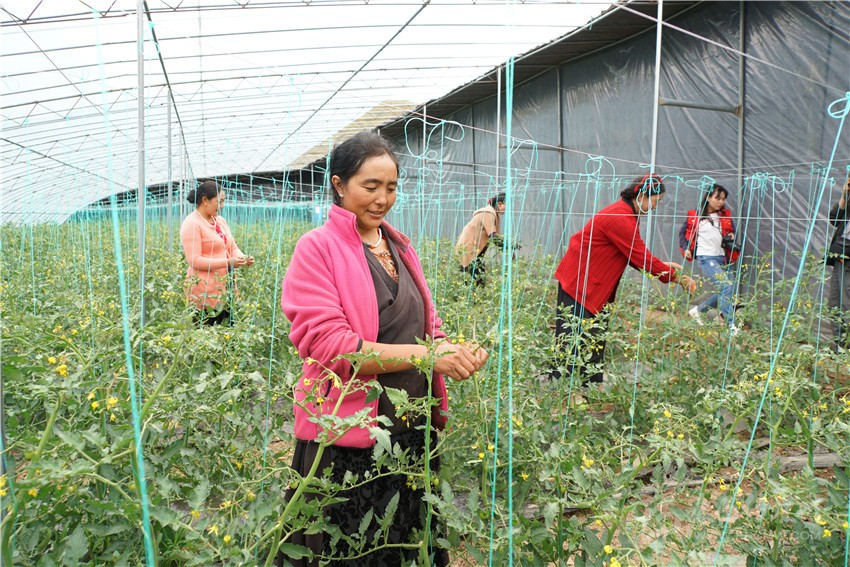 爐霍縣高原現(xiàn)代生態(tài)產(chǎn)業(yè)園勞作的當?shù)卮迕瘛?/span>王明陽 攝