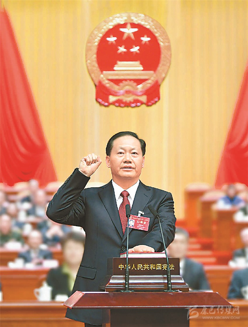 新當(dāng)選的省人大常委會(huì)主任彭清華進(jìn)行憲法宣誓。