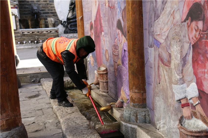 每逢節(jié)假日,是環(huán)衛(wèi)工人最忙最累的時(shí)候。2月5日下午,康定強(qiáng)盛公司清洗組組長(zhǎng)楊曉康帶著全組工作人員來(lái)到康定市水井子,打掃整個(gè)水井子的環(huán)境衛(wèi)生?!俺跻弧畵岊^水’是多年來(lái)康定市民的過(guò)年習(xí)俗,我們現(xiàn)在把這里打掃干凈,讓市民們?cè)凇畵岊^水’時(shí)有干凈整潔的環(huán)境。”楊曉康告訴記者。