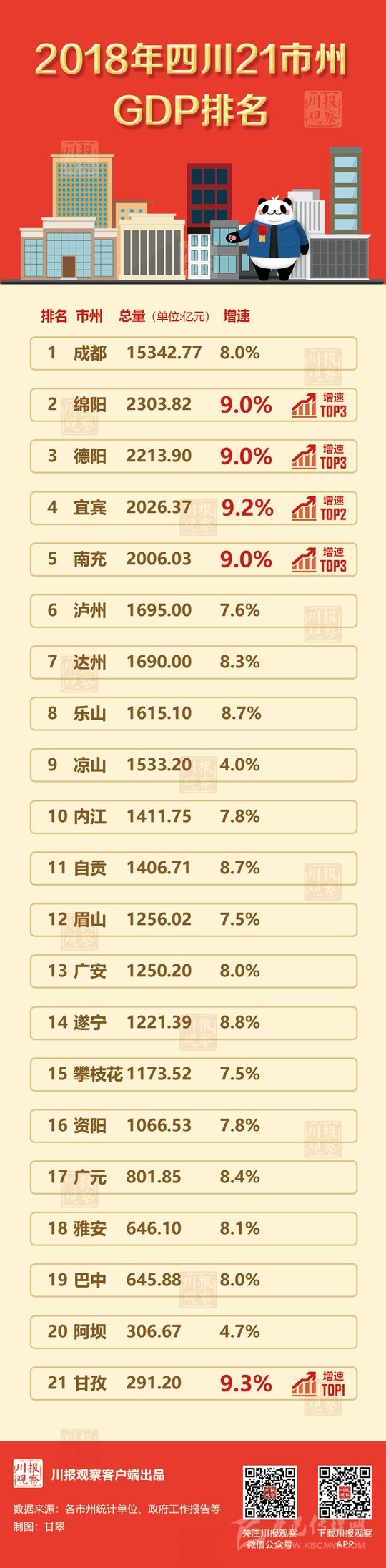 能夠率先拔得頭籌,必然有過人之處。分析發(fā)現(xiàn),綿陽、德陽、宜賓、南充4市,去年的GDP增速都保持在9%及以上。而全省21個(gè)市州GDP增速在9%及以上的,總共只有5個(gè),還有一個(gè)席位被甘孜占領(lǐng)。