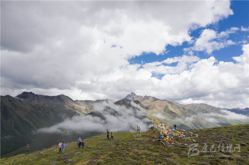 在川藏公路邊的四川康定市呷巴鄉(xiāng)俄達(dá)門巴村,游客在木雅圣地景區(qū)的草原上欣賞風(fēng)景。新華社記者 江宏景 攝