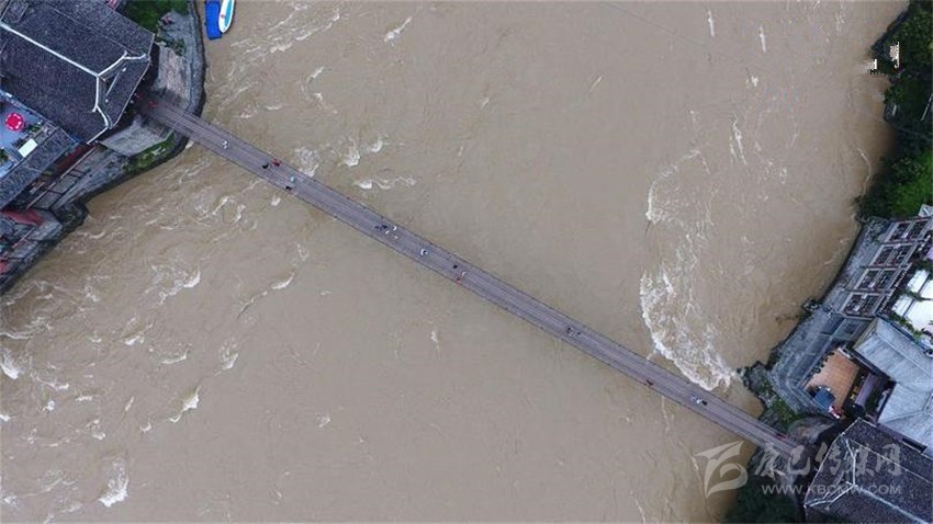7月27日,游客行走在四川瀘定縣瀘定橋上(無人機(jī)拍攝)。新華社發(fā)(王曦 攝)